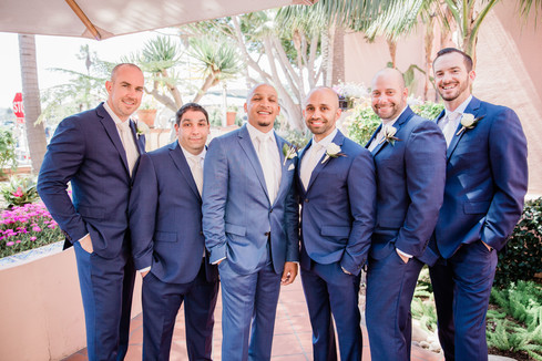 While the ladies celebrated, the gentlemen were also toasting with their custom gifted flasks from the groom, as they began to dress in their matching navy blue two button suits, white shirts and white ties. The groom, Amer, donned a lighter navy blue suit with a single white rose boutonniere and light brown Salvatore Ferragamo shoes.
