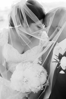 Slipping into her peep-toe Badgley Mischka heels beaded with silver stones, Ghazal was ready to see her groom for the first time. Ghazal walked into the room holding her bouquet of peonies and spray roses, past her wedding party and her mother who could hardly contain her tears of joy. Then the couple shared in a special first look, where the groom stood breathless in front of his vision of a bride. A few short moments they stood admiring one another for the first time, while their family and friends watched lovingly. Their wedding party then gathered with smiles to share in a few photos with the couple before they began their intimate wedding portraits.